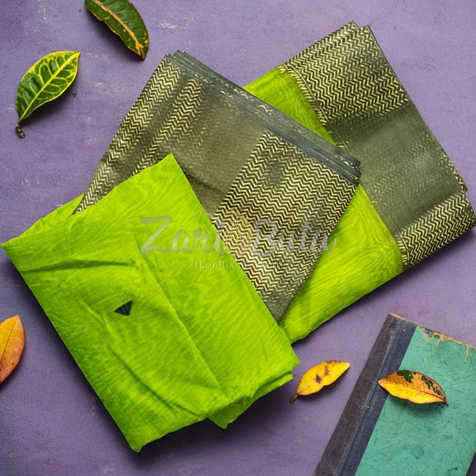 Parrot Green Triangle Buti Broad Border Maheshwari Handloom Saree