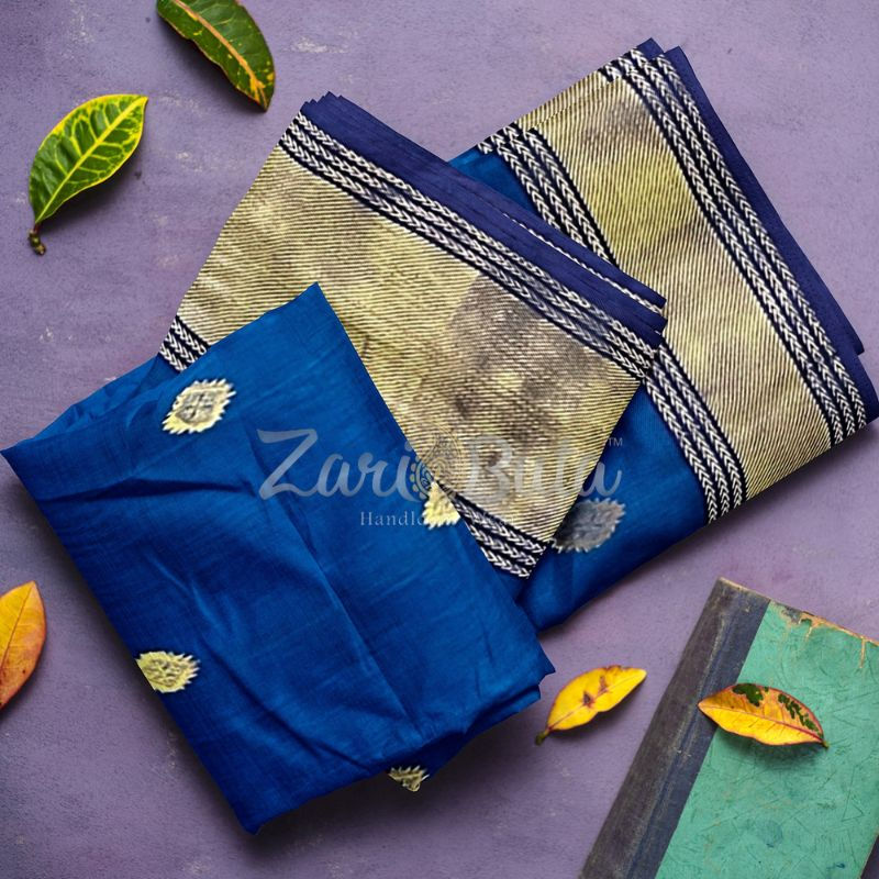 Dark Blue Small Tulip Buti Broad Border Maheshwari Handloom Saree