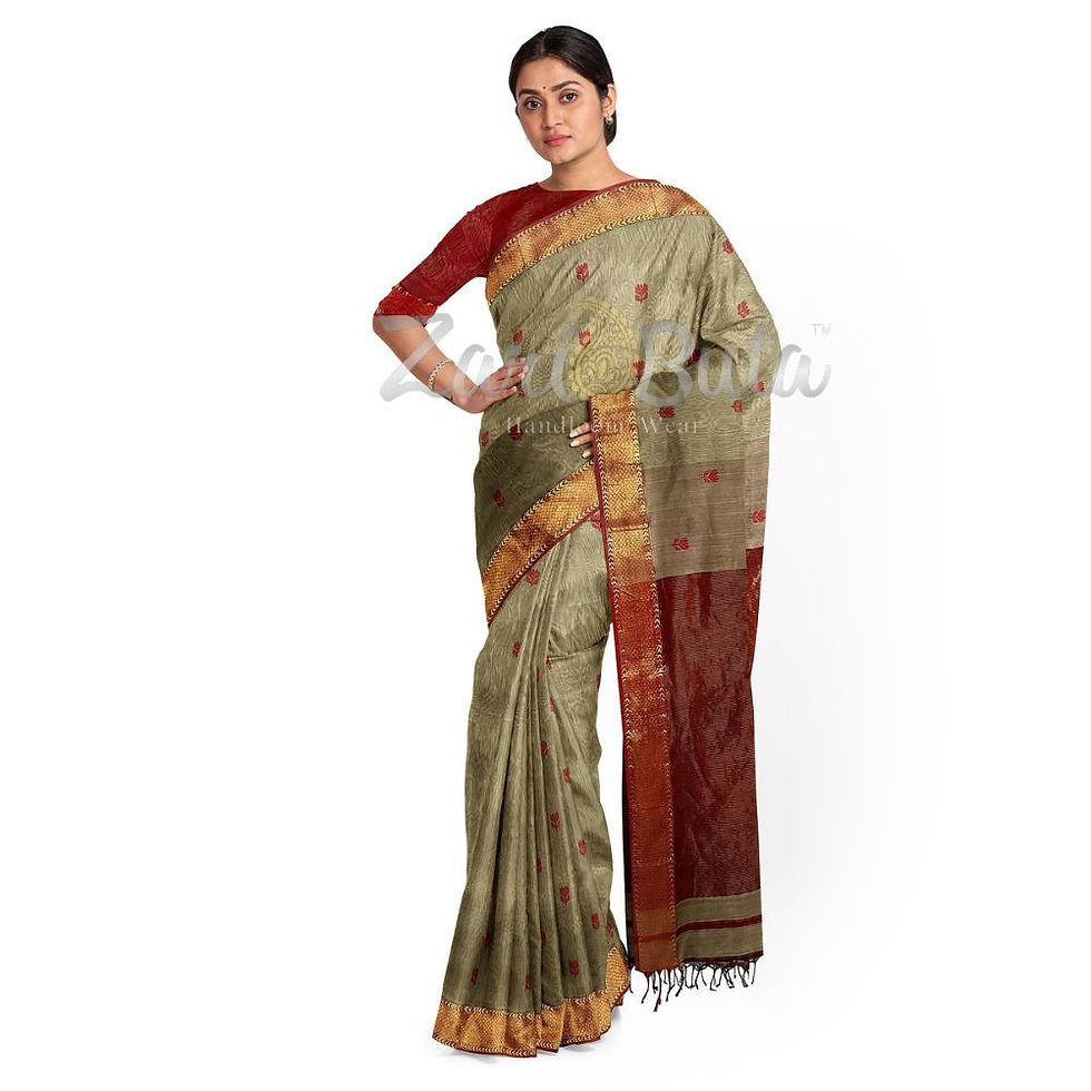 Tassar Small Tulip Buti Broad Border Maheshwari Handloom Saree